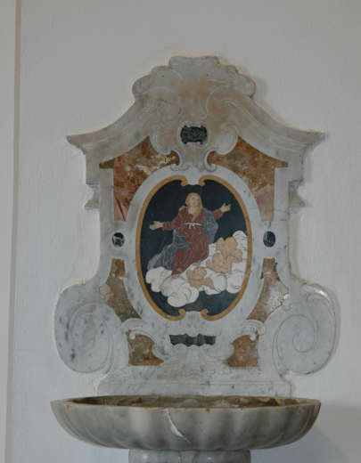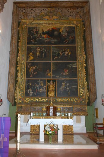 E' conosciuta attualmente come Chiesa di San Rocco, al quale il popolo grottolese dedicò statua e culto dopo la terribile peste che colpì la popolazione nel 1655. Annesso al tempio vi era un ospedaletto la cui presenza è attestata la prima volta nella visita pastorale compiuta da Mons. Saraceno nel 1544. La chiesa fu costruita in prossimità delle fortificazioni turrite del paese e si presume che il tempio avesse solo la navata grande e quella di destra; la navata di sinistra e la sagrestia sono state costruite, probabilmente, tra la fine del XVI e l'inizio del XVII secolo. La facciata si presenta a doppia capanna con tre rosoni rinascimentali; sopra il portale maggiore in pietra sono posti tre bassorilievi che raffigurano l'annunciazione e lo stemma del Comune, mentre al vertice della facciata è posto il volto dell'Eterno Padre. L'interno è a tre navate (18x16m), di cui quella centrale è senza dubbio la più ricca dal punto di vista artistico; nella navata di sinistra, interamente decorata con stucchi, nella prima campata, si trova l'altare del Patrono San Rocco con statua, la seconda arcata accoglie l'altare e la statua della Madonna dell'Assunta, nella terza campata vi è l'altare della SS. Trinità con dipinto ad olio, in fondo alla navata sinistra si trova la sacrestia costruita nel 1658, come testimonia l'incisione sull'architrave. Sopra il portale è posto un bassorilievo raffigurante un Drago a Sette Teste, che nella tradizione biblica assurge a simbolo eminente dello scatenamento di forze oscure e telluriche ed è perciò associato all'avvento dell'Anticristo, espressione del Male assoluto, quinta essenza dell'oscurità e latore di morte e distruzione. Nella navata destra, gli altari presenti erano dedicati rispettivamente alla Madonna Annunziata e alla Glorificazione di Maria e vi erano anche dei quadri. La terza campata accoglie la Cappella della Madonna, con bassorilievi delle Litanie del Santo rosario. La navata centrale è dominata dal dossale ligneo dorato, un tabernacolo a tarsie, mentre l'altare è fiancheggiato da due bassorilievi in pietra raffiguranti lo stemma del Comune. Sovrasta l'altare il magnifico polittico ad olio su tela, raffigurante le sette Opere di Misericordia corporali, più quattro pannelli sul basso, attribuiti all'artista Pietro Antonio Ferro e databili intorno al 1630. Al centro del retablo, la scultura lignea, dipinta e dorata, della Madonna col Bambino, alla quale è legata una leggenda popolare. A sinistra vi è il pulpito, di noce massiccio, sorretto da una maestosa aquila, che ha tra gli artigli lo stemma di Grottole. Nel pannello frontale del pergamo, a rappresentare il sacrificio di Cristo, è scolpito un pellicano che nutre i suoi figli. Presenti, nella navata centrale, due acquasantiere in marmo policromo e quattro fosse sepolcrali. Anche l'organo e la cantoria, che sovrastano l'ingresso principale, sono degli inizi del 1700.