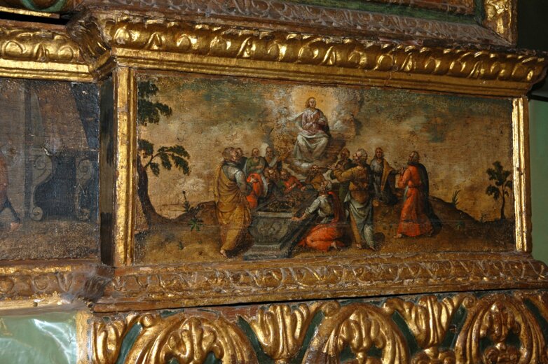 La chiesa DIRUTA fu costruita in più fasi, sui resti di due piccole chiesette che, per questo motivo, furono rase al suolo. La facciata fu completata nel 1595 dallo scalpellino Giulio Carrara della Padula, come si può apprendere dalla data e dalla firma incise sul suo frontespizio. Cinque statue sulla facciata Sulla porta maggiore sono collocate cinque statue (attualmente solo 4 perché una è depositata presso la Soprintendenza ai Beni Artistici e Storici di Matera) riproducenti l’Eterno Padre ed i quattro Evangelisti. All’interno della chiesa erano presenti ben 9 altari tutti ornati di statue e quadri, la maggior parte di essi è conservata nelle altre chiese cittadine. Nel XVII secolo la chiesa subì i primi danni a seguito del terribile sisma del 1694, cui seguì, nella seconda metà del ‘700, il crollo del campanile che precipitò sulla navata centrale.